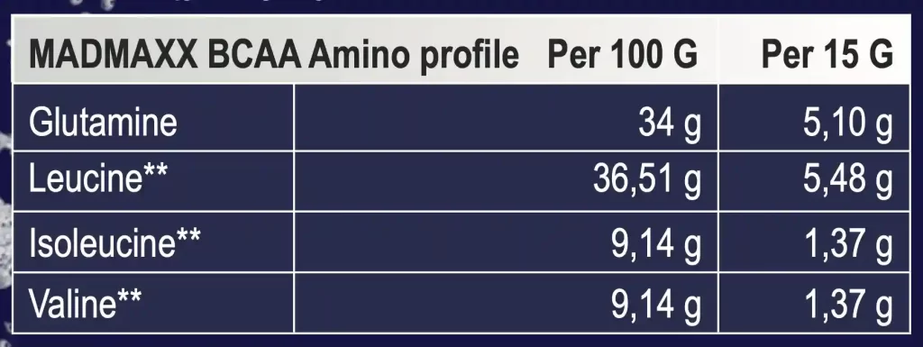 MADMAXX BCAA AMINO PROFILE PER 100G